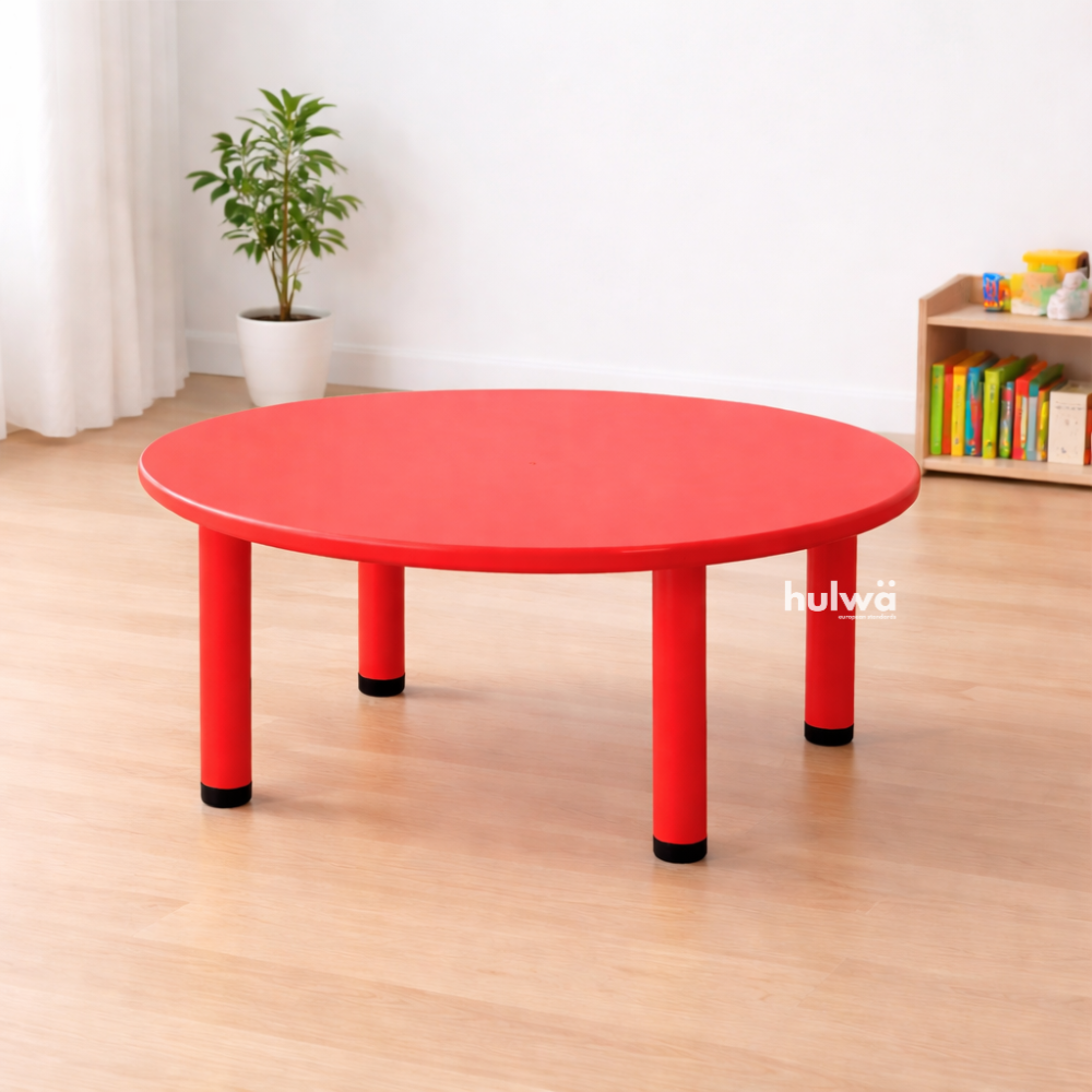 Meja berbentuk dengan lingkaran berdiameter cukup lebar yaitu 110 cm, dapat memberikan ruang hingga 8 anak sekaligus.