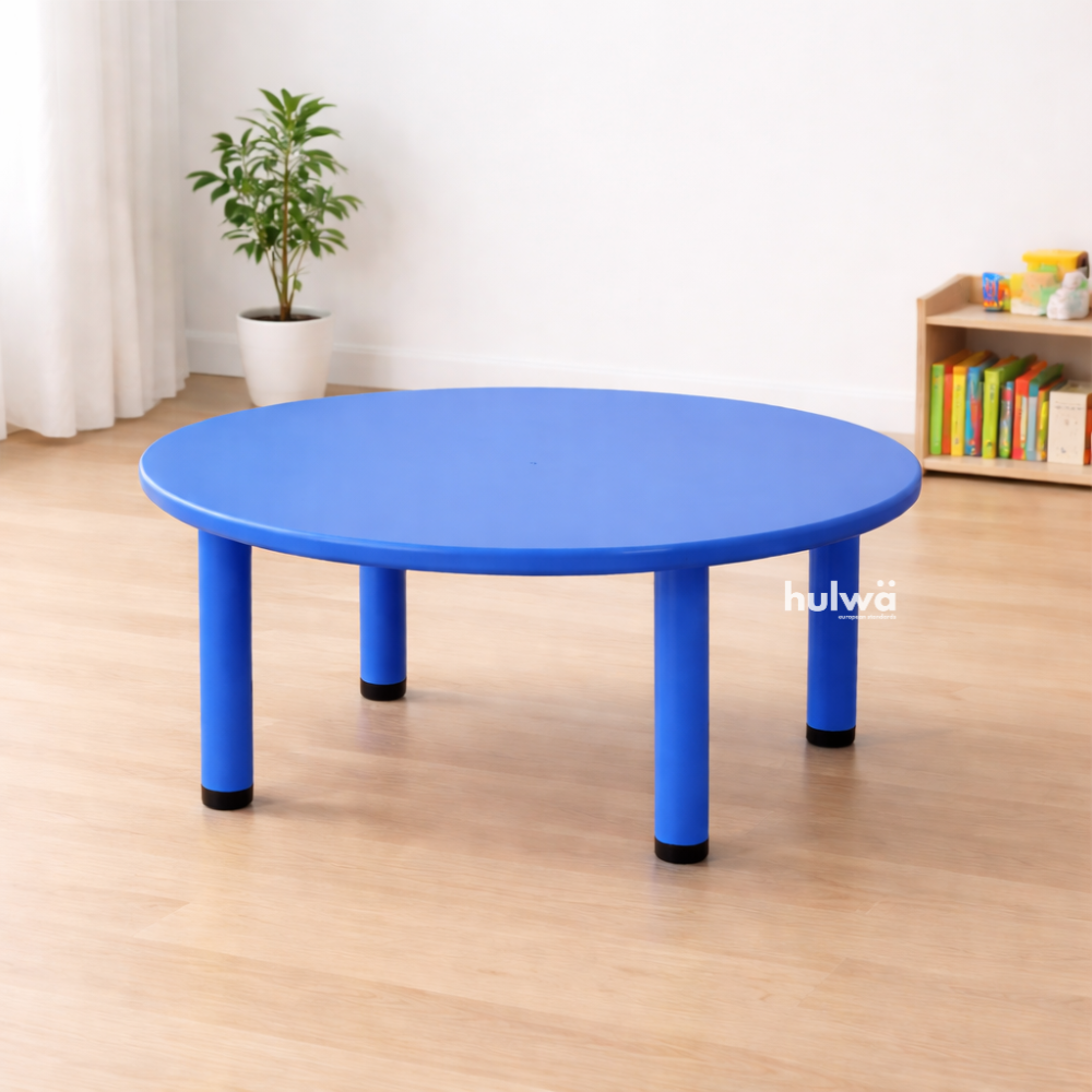 Meja berbentuk dengan lingkaran berdiameter cukup lebar yaitu 110 cm, dapat memberikan ruang hingga 8 anak sekaligus.