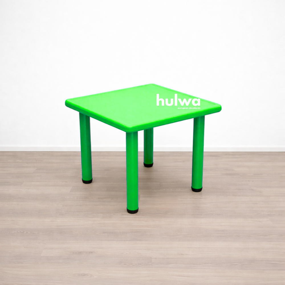 Meja berbentuk bujur sangkar, sangat cocok untuk les privat atau digunakan di kelas bimbingan khusus yang memerlukan komunikasi yang intense 1 on 1. Dapat memuat hingga 4 anak. Sudut tidak lancip, aman jika terjadi benturan yang kemungkinan bisa terjadi kapan saja.