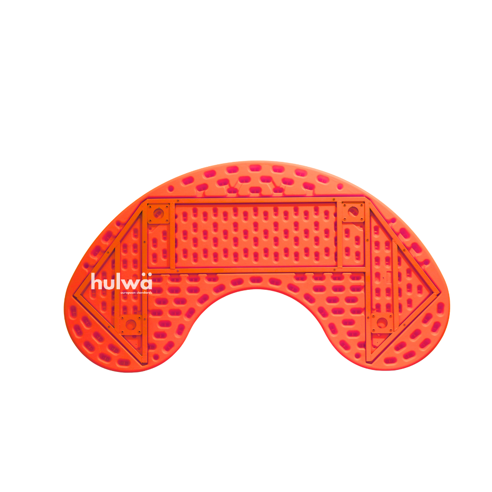 Meja berbentuk bulan sabit atau setengah lingkaran dengan cekungan kecil di tengahnya, dapat menampung efektif hingga 8 anak. Model meja ini adalah yang paling best seller, karena bisa di formasikan agar membentuk lingkaran kecil hingga lingkaran lebih besar.