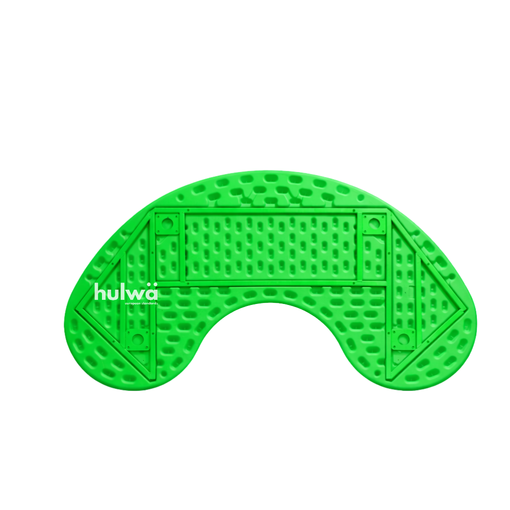 Meja berbentuk bulan sabit atau setengah lingkaran dengan cekungan kecil di tengahnya, dapat menampung efektif hingga 8 anak. Model meja ini adalah yang paling best seller, karena bisa di formasikan agar membentuk lingkaran kecil hingga lingkaran lebih besar.
