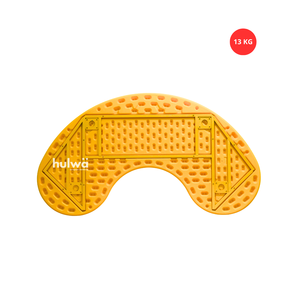 Meja berbentuk bulan sabit atau setengah lingkaran dengan cekungan kecil di tengahnya, dapat menampung efektif hingga 8 anak. Model meja ini adalah yang paling best seller, karena bisa di formasikan agar membentuk lingkaran kecil hingga lingkaran lebih besar.