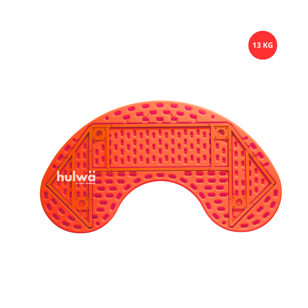 Meja berbentuk bulan sabit atau setengah lingkaran dengan cekungan kecil di tengahnya, dapat menampung efektif hingga 8 anak. Model meja ini adalah yang paling best seller, karena bisa di formasikan agar membentuk lingkaran kecil hingga lingkaran lebih besar.